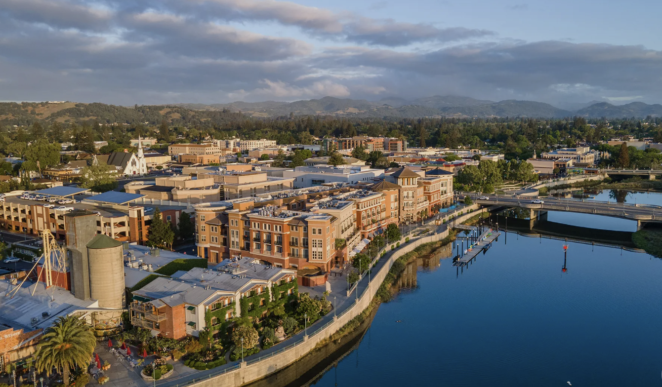 A lively, walkable riverfront district filled with restaurants, boutiques, and relaxed wine-country charm